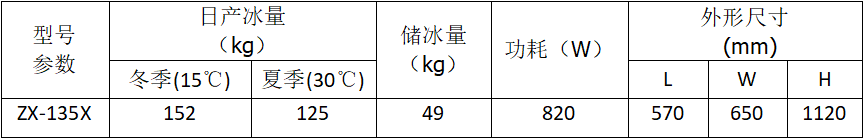 日產(chǎn)冰量:冬季(15℃)152kg,夏季(30℃)125kg